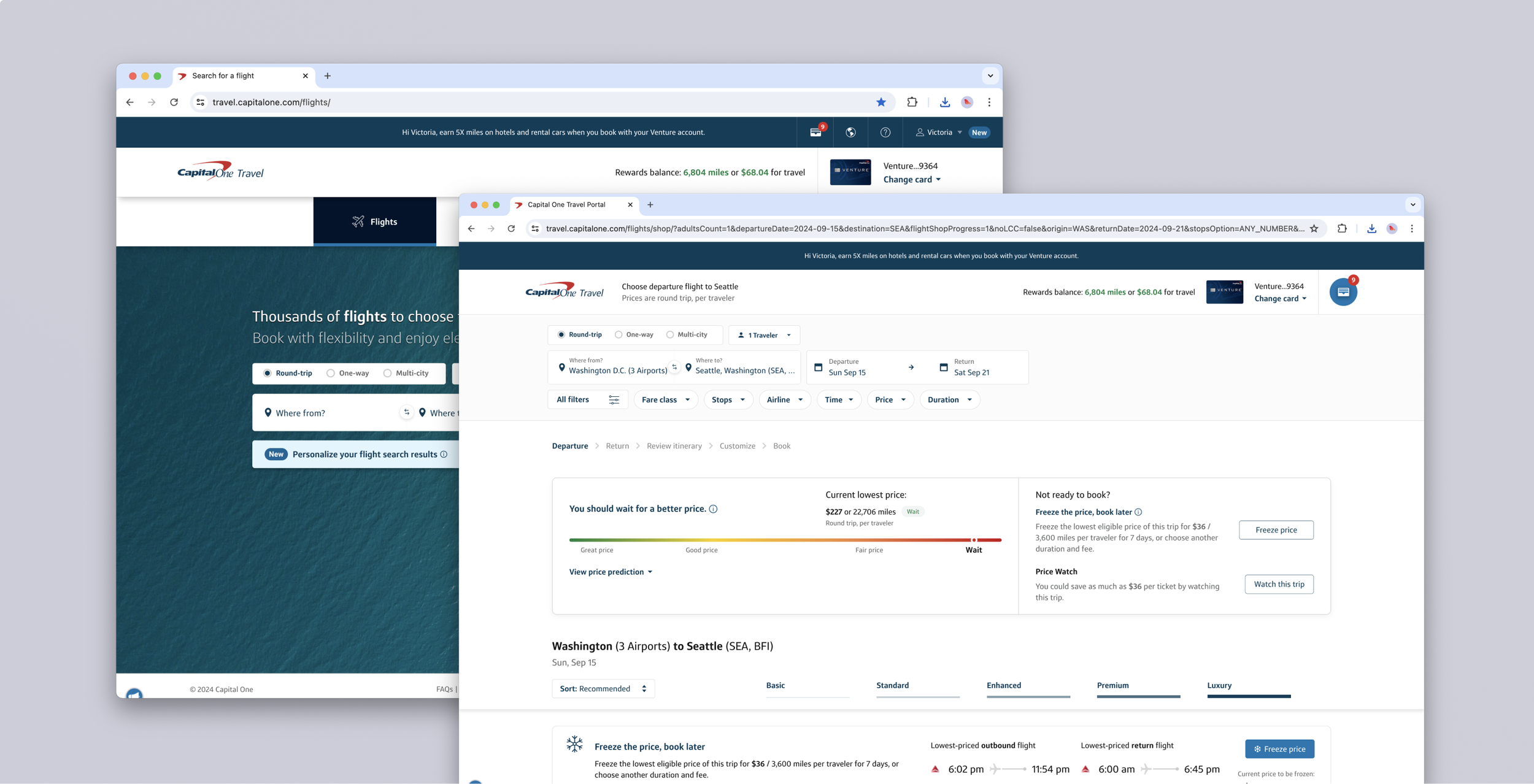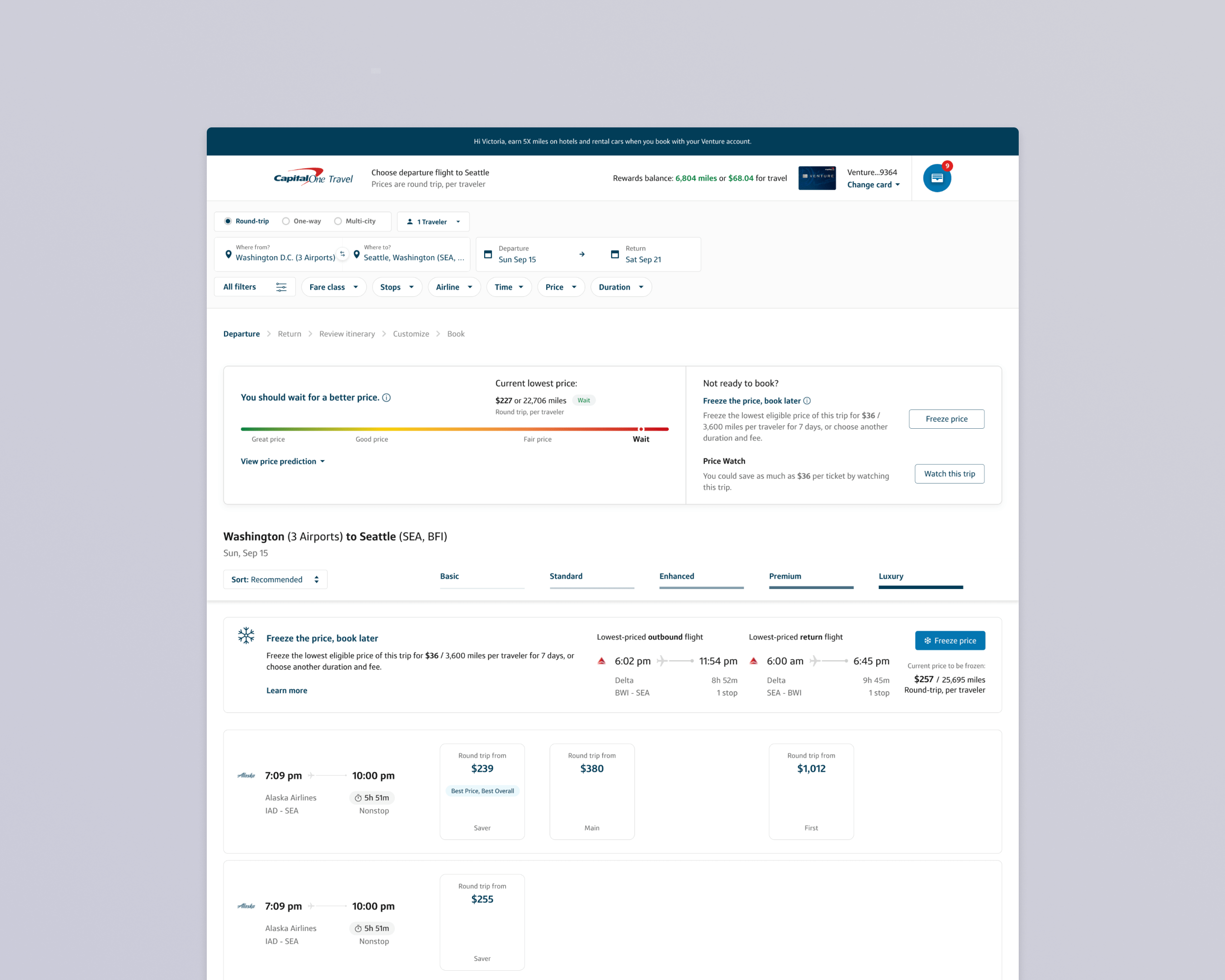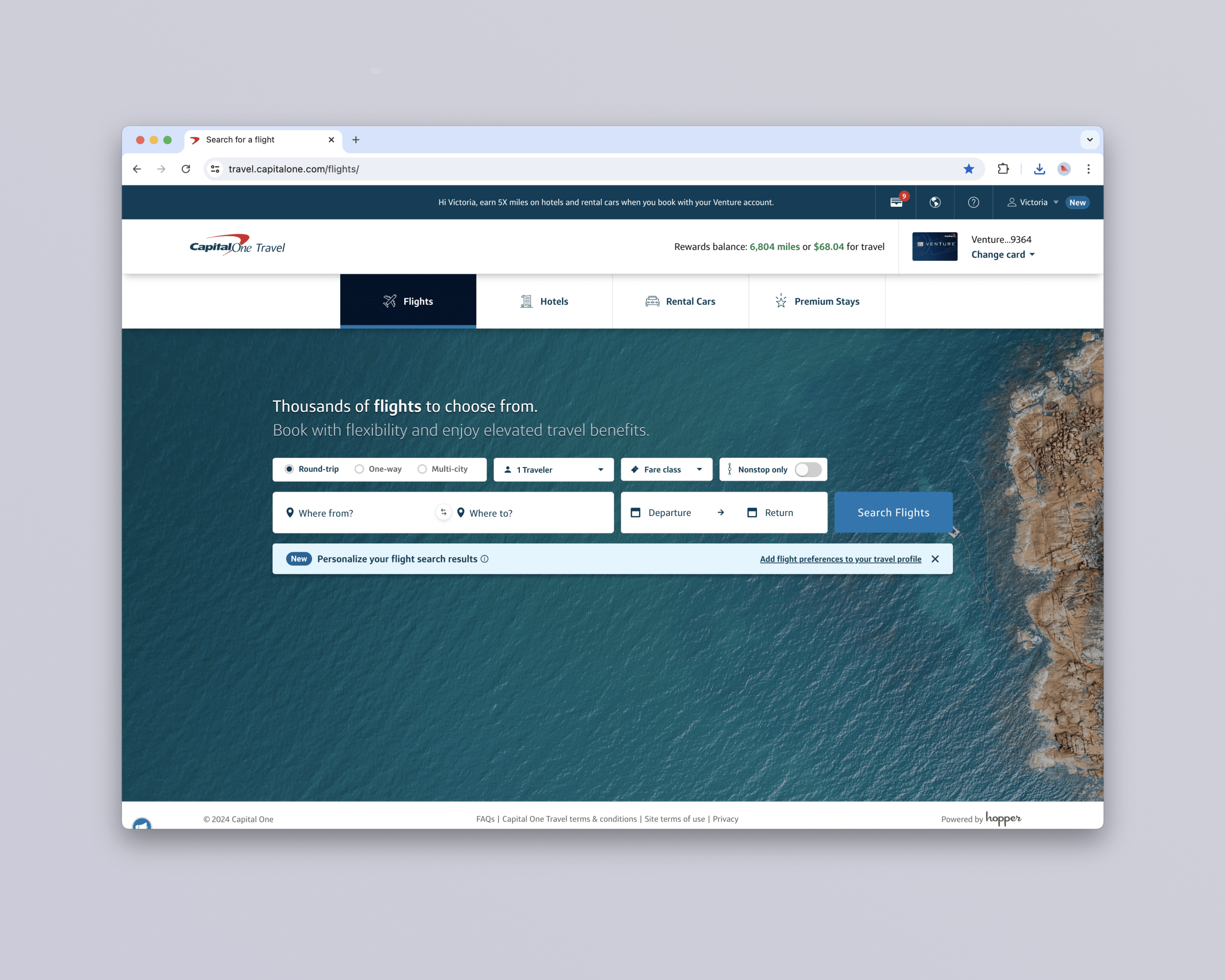 Re-designed and re-launched Capital One Travel Portal in tandem with new Premium Venture X credit card launch. Personally leading efforts in optimization for Search, Booking, Trip management, and Checkout pre-mvp.
