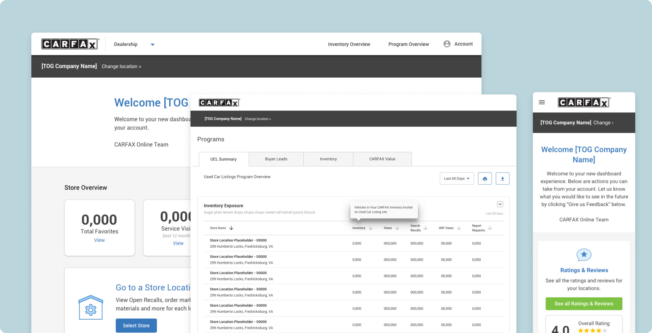 Led end-to-end Product Design for Dealership products, improving front- and backstage customer experience for over 25k+ dealership users.